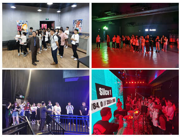 在Live House演出空间,大华1935剧场音响老师李老师讲解了鼓组的录音及扩声技巧、话筒摆放位置等相关专业知识,理论与实践在这次参观活动中相互结合,学生们对录音与扩声的拾音技术有了更深层次的认知和比较。在活动结束时,周老师对我校师生前来剧院参观学习表示肯定与支持,并欢迎同学们来剧院实习,学习剧场专业技术、运营管理以及活动策划等相关内容。