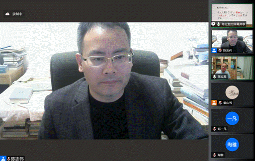 在讲座的尾声,线上听讲的学生和老师纷纷参与讨论,向陈立胜教授提问,请教陈教授天人合一,身心合一和天地一体是否是一致的?王阳明的亲民是否和沟口雄三说的明朝里甲制度的崩溃有关等问题,陈教授都一一耐心解答,整个讨论热烈而精彩。