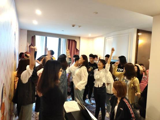 随着比赛时间的临近,请假的人数越来越少,排练的频率逐渐提升到每天一次。即使暴雨倾盆,传唱团成员们仍然“风雨无阻、风雨同舟”。