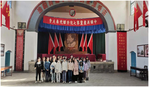 与延安大学的同学分别后,同学们来到了杨家岭革命旧址,参观了中共七大会址与延安文艺座谈会会址,在这里同学们通过回忆《讲话》内容来与延安革命精神相衔接,透过一本本珍贵的文艺报刊,更直现地体会到了“文艺为工农兵服务”的思想导向。