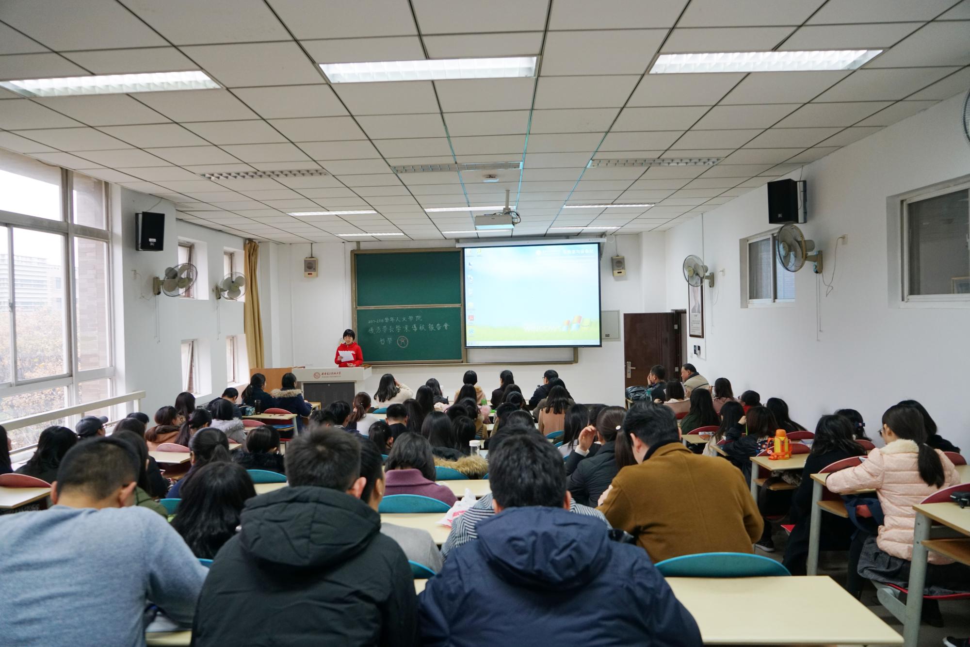 之后进入优秀学长报告环节。在主持人幽默诙谐的介绍后,各位学长学姐从自身实际经历出发,倾囊相授,为大家带来了精彩的分享。魏正与赵嘉霖为同学们详细介绍了求职的基本流程以及面试的分类。他们分别强调了无领导小组讨论的重要性,告诫大家要利用逻辑思维与表达能力等专业优势,在面试中崭露头角。高潮从早、勤、等三个方面为同学们分享了他的求职经验。他说到,每位同学都需要为求职做好提前准备,包括简历等硬实力与表达能力等软实力;在求职的过程中,要做到勤,不能放弃任何锻炼的机会;同时学会耐心等待,保持乐观的求职心态。薛宝康从网申、笔试、面试等流程为大家分享了求职经验,告诉有意从事银行职业的同学应当从哪些方面入手准备。焦路尧从考研角度出发,建议大家基于自己的实际能力提前做出选择并做好规划,在努力学习好专业课程的同时提高自己的写作与表达两大能力。薛紫月和刘子琳为大家详细介绍了推免政策与应试技巧,她们用自己的亲身经历告诫同学们在大学期间要认真学习专业知识,打下良好基础,此外多多参加各高校举办的夏令营活动,避免自己走弯路。郭佳悦大致介绍了出国留学的前期准备,包括雅思托福的学习,国外高校申请等方面知识的介绍。