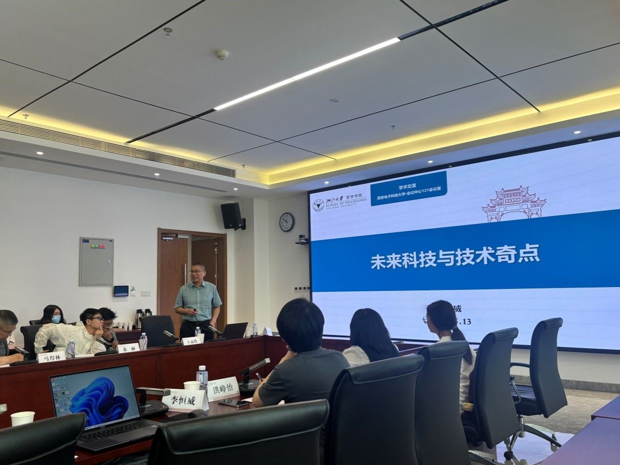 (通讯员:杨千禧龙)5月13日上午,浙江大学哲学学院党委书记、副院长李恒威教授应邀在南校区会议中心121会议室做客“论道终南”跨文化讲坛第119期,为beat365亚洲版官网师生深度解读“未来科技与技术奇点”这一主题。本次学术报告会由哲学系马得林教授主持,学院党委副书记、哲学系师生三十余人参加。