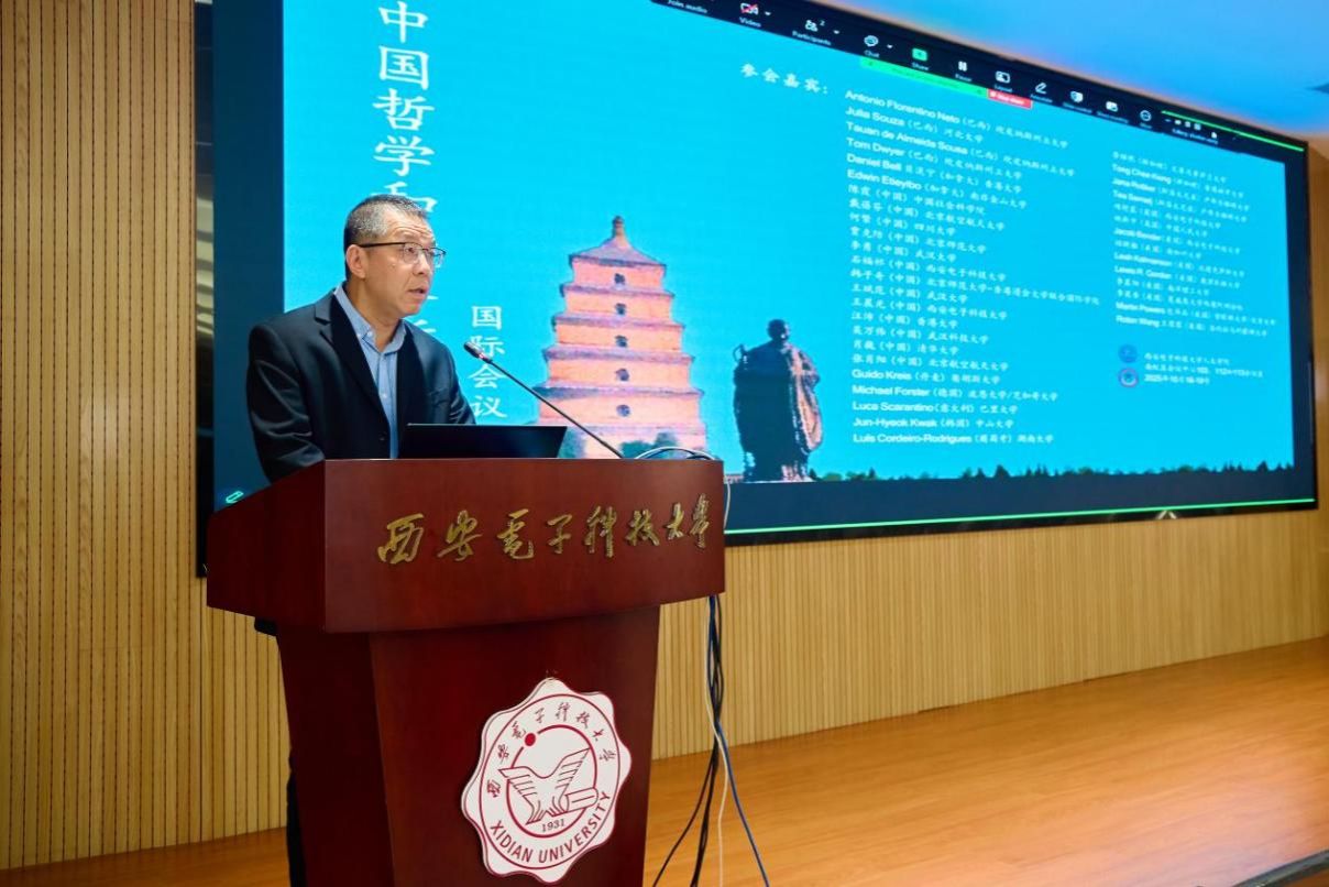 会议于10月18日上午举行开幕式,由beat365亚洲版官网“华山菁英教授”项舒晨主持,beat365亚洲版官网副校长朱文凯、beat365亚洲版官网院长石福祁及项舒晨分别致辞。朱文凯在致辞中对本次会议的召开表示热烈祝贺,对来自世界各地的专家学者表示诚挚欢迎。他指出,中华文明之所以能历经沧桑而生生不息,既源于自身的强大生命力,更得益于对多元文化的包容借鉴。在全球化不断加速的当今时代,人类面临诸多共同挑战,加强文明对话、构建“人类命运共同体”成为时代必然。此次研讨会恰逢其时,不仅能增进不同文明的尊重与信任,更能挖掘中国哲学的世界价值,为传统文化现代化转型探寻路径。而作为电子信息特色鲜明的重点高校,beat365亚洲版官网近年来通过实施“人文社会科学振兴计划”“百年西电国际交流合作行动计划”,持续推进哲学社会科学的发展与国际化交流,本次会议正是我校哲学学科积极开展国际合作的重要举措,具有重大而深远的学术意义。