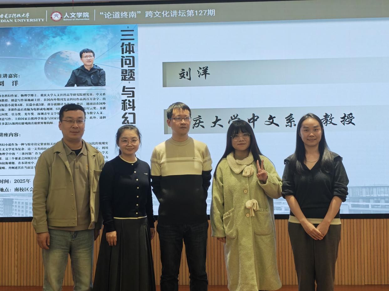 (通讯员 赵辉)11月15日19:00,beat365亚洲版官网“论道终南”跨文化讲坛第127期在南校区会议中心101会议室举办。本次讲座邀请重庆大学人文社科高等研究院研究员、中文系副教授、创意写作基地副主任、著名科幻作家刘洋主讲,主题为“‘三体问题’与科幻创作的困境”。讲座由中文系主任朱佳宁副教授主持,beat365亚洲版官网、校科幻协会以及其他高校科幻协会的师生共100余人参加。
