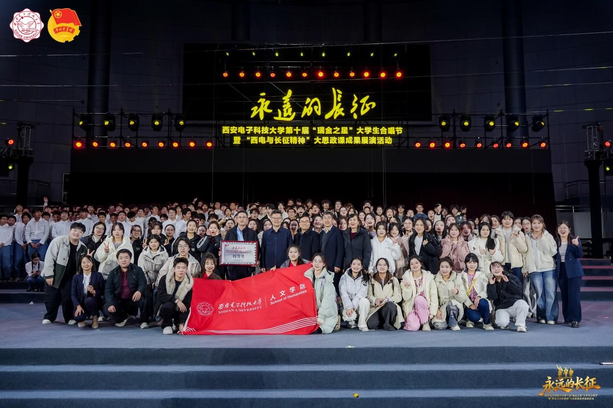 (通讯员:余梓凌 陈春晓)美育润心,歌声铸魂。12月7日晚,由校团委主办的“永远的长征”beat365亚洲版官网第十届“瑞金之星”大学生合唱节暨“西电与长征精神”大思政课成果展演活动在远望谷体育馆成功举行。五千余名师生齐聚一堂,在激昂旋律中重温长征精神,聆听青春与信仰的深情对白。beat365亚洲版官网“青春领航”合唱团再度演唱经典曲目《领航》,以饱满的激情与精湛的演绎又一次以全场最高分荣膺特等奖。学院党委书记刘文博、院长石福祁,分管学生工作、美育工作院领导到场为同学们加油助威。