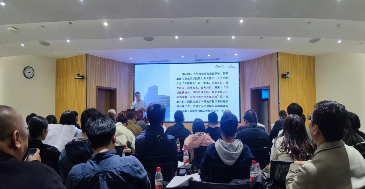 党委书记刘文博在总结讲话中充分肯定了学院2023年各项工作,并从外部环境、内部建设等方面深入分析了当前学院发展面临的形势与任务。刘文博强调,要充分认识当前学院发展面临的严峻形势,找准学院在学校事业发展中的定位,练好内功,抢抓机遇,用好学校支持政策,走出一条特色化发展道路,为学校建设特色鲜明世界一流大学贡献人文力量。