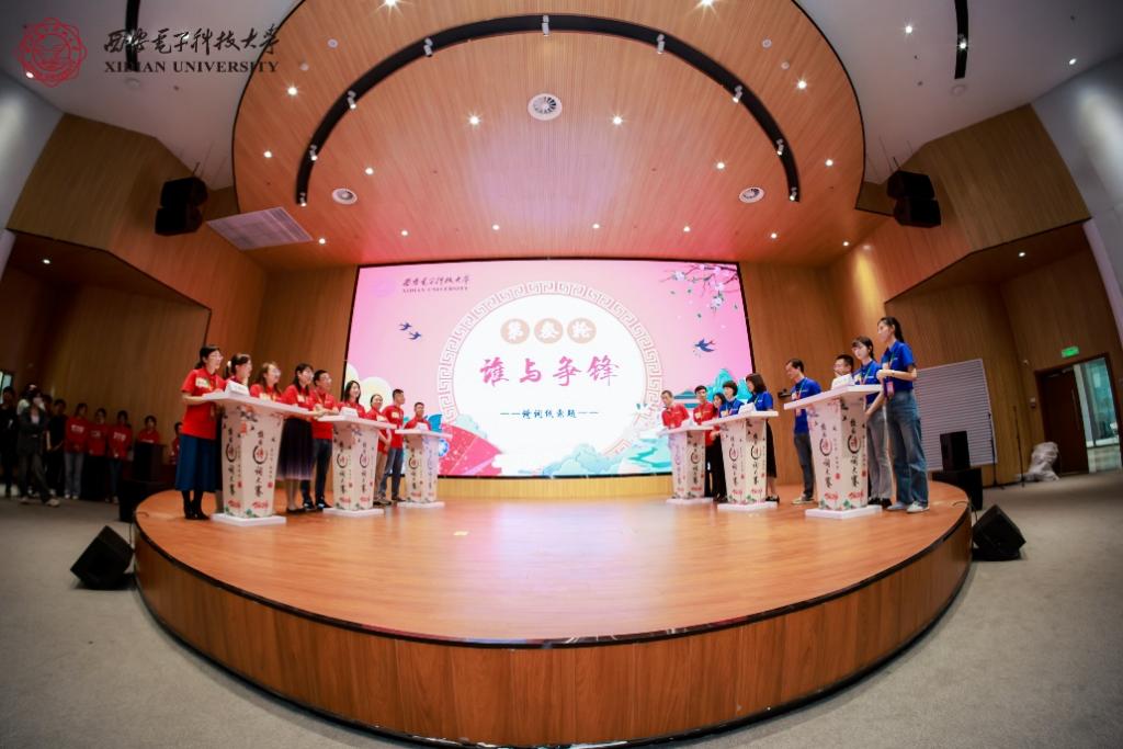 为扩大师生参赛覆盖面,“终南杯”第七届校园诗词大赛首次举办教工组比赛,分为线上初赛、线下决赛两个环节。经过初赛线上答题选拔程序,共有18名教职工进入决赛环节。决赛分为群英荟萃(诗词对对碰)、大浪淘沙(诗词小剧场)、谁与争锋(诗词线索题)和巅峰对决(飞花令)四轮进行,采用混合组队,积分制+淘汰制模式进行比赛。决赛以知识竞答的形式,辅以线索猜诗、名家解读、情景演绎等创新元素,让师生在听、说、读、写诗词的互动性参与中,体会中华文化的外在之秀与内在之韵。