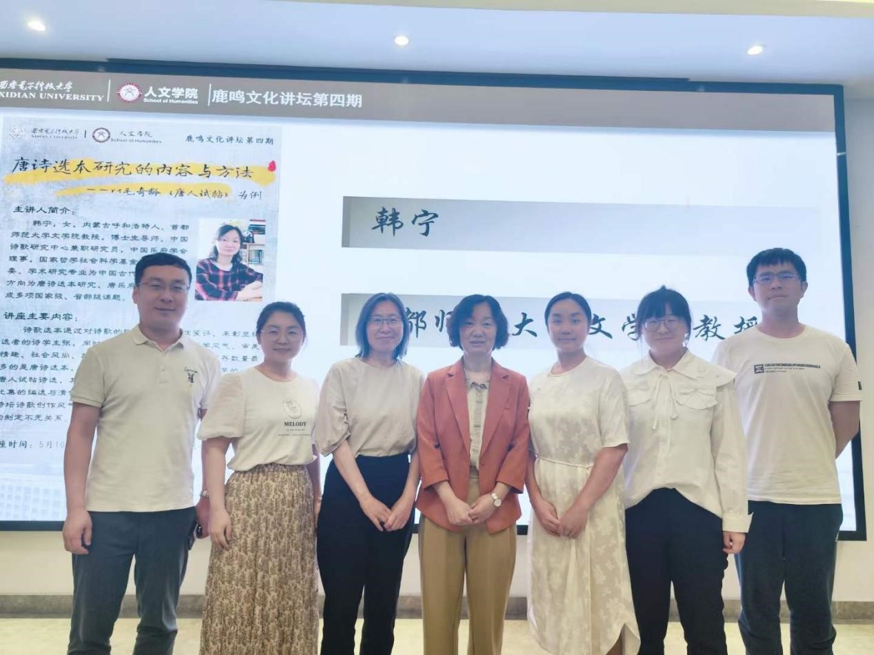 (通讯员 秦国程)5月10日晚7:00,beat365亚洲版官网中文系“鹿鸣文化讲坛”第四期在南校区会议中心121室举办。本次活动特邀首都师范大学文学院教授、博士生导师韩宁主讲,题目为“唐诗选本研究的内容与方法——以毛奇龄《唐人试帖》为例”。活动由中文系教授王志清主持,中文系主任朱佳宁及青年教师李东若、刘茸茸、连晨炜、王璐和四十余位在读本、硕学生聆听并参与了讨论。