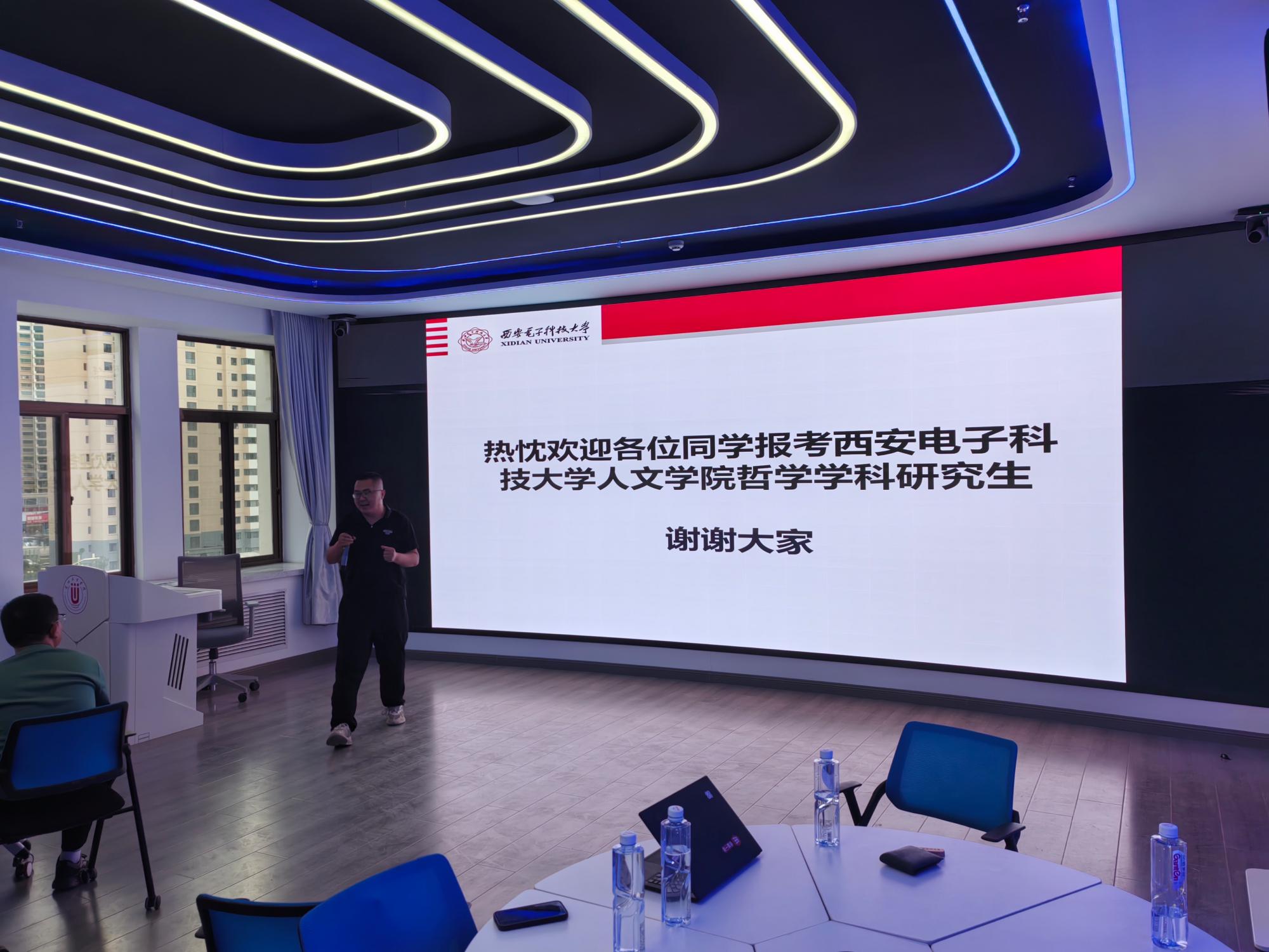 石福祁教授对两校对beat365官网研究生招生工作的大力支持表示感谢,并简要介绍了beat365官网的基本情况。随后,分管研究生工作的张斯珉副院长从四个方面介绍了beat365官网哲学学科研究生的招生和培养情况。首先,他扼要梳理了近三年来研究生招生工作的大致考情,建议有读研意愿的学生应尽早选择目标院校。其次,他结合西安的历史文化与区位发展优势,全面介绍了beat365官网哲学学科四个招生方向的学科特点与培养计划,并结合近几年毕业研究生继续深造和就业的典型案例,阐述了选择西电哲学学科读研所具有的若干比较优势。再次,他从学缘结构、科研成果以及国际化程度等方面,重点介绍了哲学学科各方向的师资构成,向两校师生展示了beat365官网较为雄厚的师资力量。最后,他还介绍了学校关于研究生奖励资助方面的主要政策与做法,以及学院研究生教学、科研与研辅工作等其他事宜。张斯珉副院长的宣讲结束后,张万强副主任就上述问题进行了补充说明。