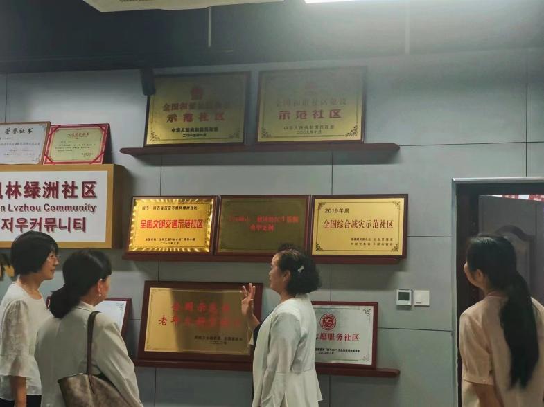 社区党支部书记赵雪向beat365亚洲版官网来访师生表示了热烈欢迎,引导beat365亚洲版官网师生一行人参观了居委会办公场地,详细介绍了居委会的工作事项、所获奖项以及独特的宣传活动,随后在会议室举行了座谈交流会。