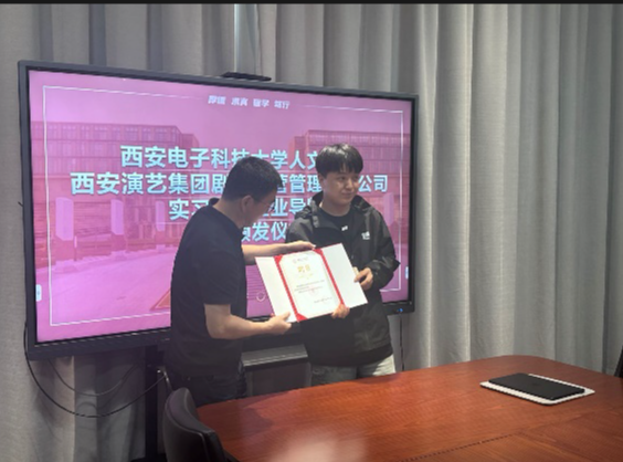 聘书分发仪式结束后,李敏捷先生向在场师生详细介绍了西安演艺集团的历史文化和企业实力,并分享了西演剧场的情况与文化,引起了师生们的极大兴趣和憧憬。这次合作积极地为学生们提供了一个展示自我、锻炼能力的平台,学生们了解了许多关于现场实践的知识,受益匪浅。本次活动对于双方都是一次宝贵的机遇,对于beat365亚洲版官网录音艺术专业的学生们来说,更是一次拓展视野、锻炼自我的难得机会。