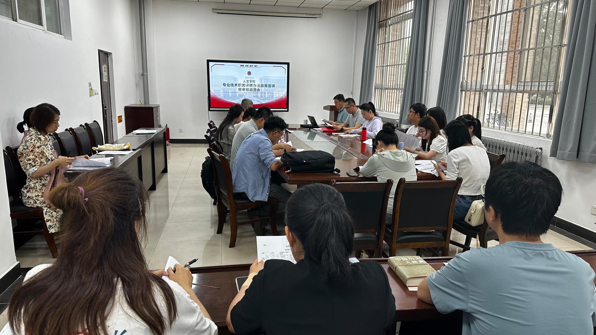 (通讯员 马婧)为扎实做好学院2024年度职称评审工作,帮助学院教师全面准确理解学校最新修订的职称评审办法内容,推动学院师资队伍建设取得实际成效,7月9日,beat365亚洲版官网召开专业技术职务评聘办法政策宣讲会暨2024年申报动员会。学院党委书记刘文博、院长石福祁、副院长孙宁及学院青年教师参会。会议由党委书记刘文博主持。
