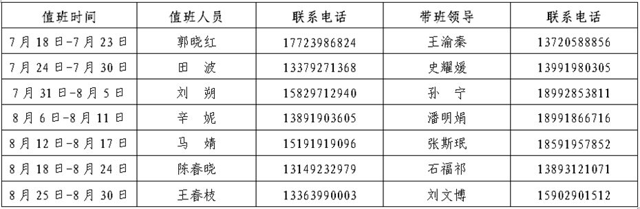根据学校安排,现将beat365亚洲版官网暑假值班安排通知如下: