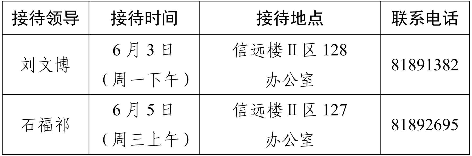 根据《beat365亚洲版官网领导班子接待日制度》精神,每周安排两位学院领导接待师生。现将6月3日-7日学院领导接待安排公布如下: