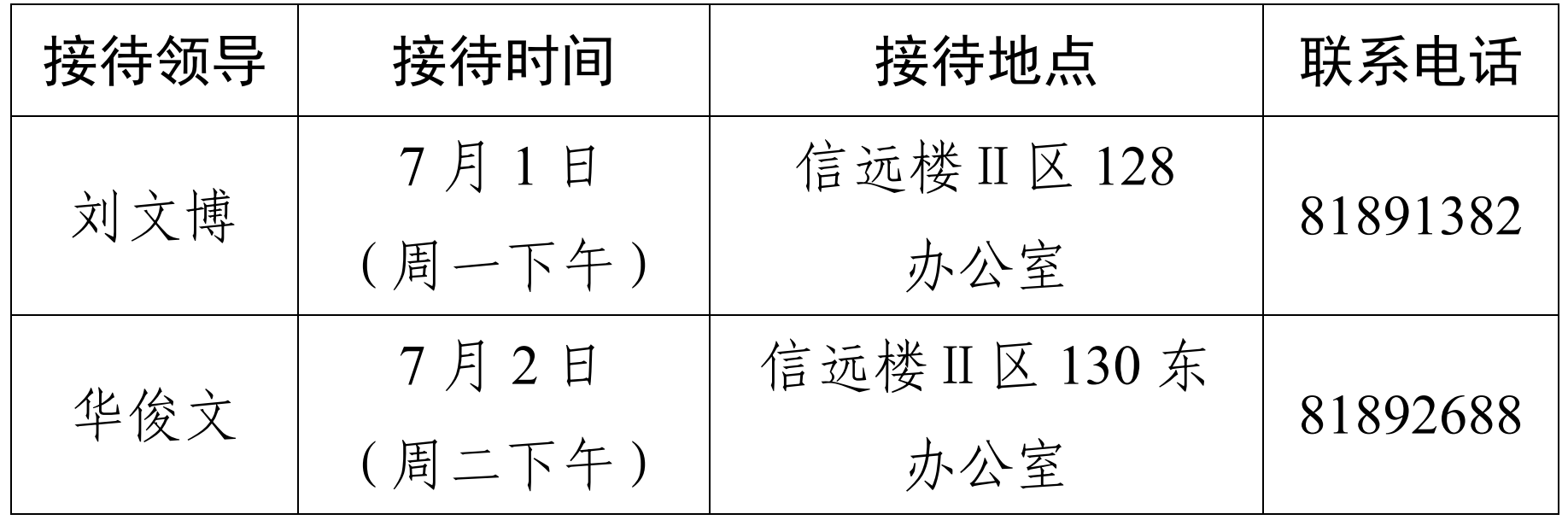 根据《beat365亚洲版官网领导班子接待日制度》精神,每周安排两位学院领导接待师生。现将7月1日-5日学院领导接待安排公布如下: