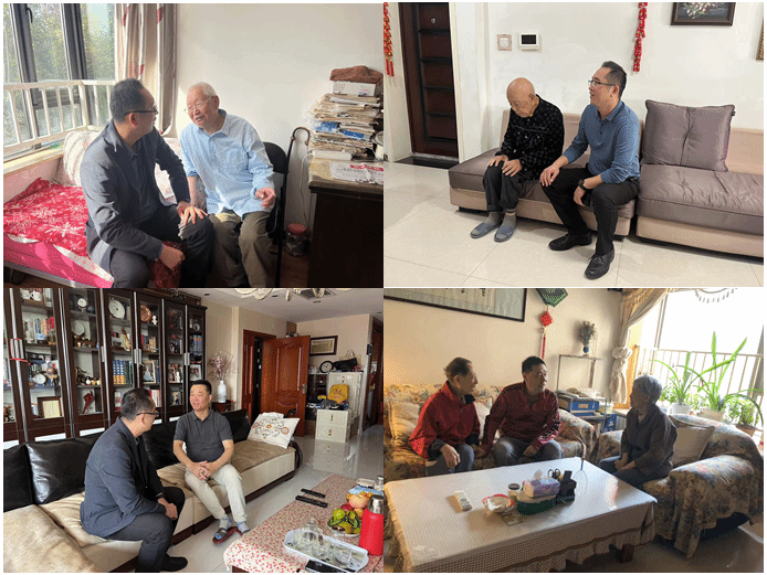 刘文博、王渝秦等人详细询问老教师们的身体健康状况及生活困难,感谢他们为学院发展作出的卓越贡献,向他们汇报了近期学院事业发展及改革的相关情况,听取他们对学院发展的宝贵建议,并祝愿他们健康长寿。