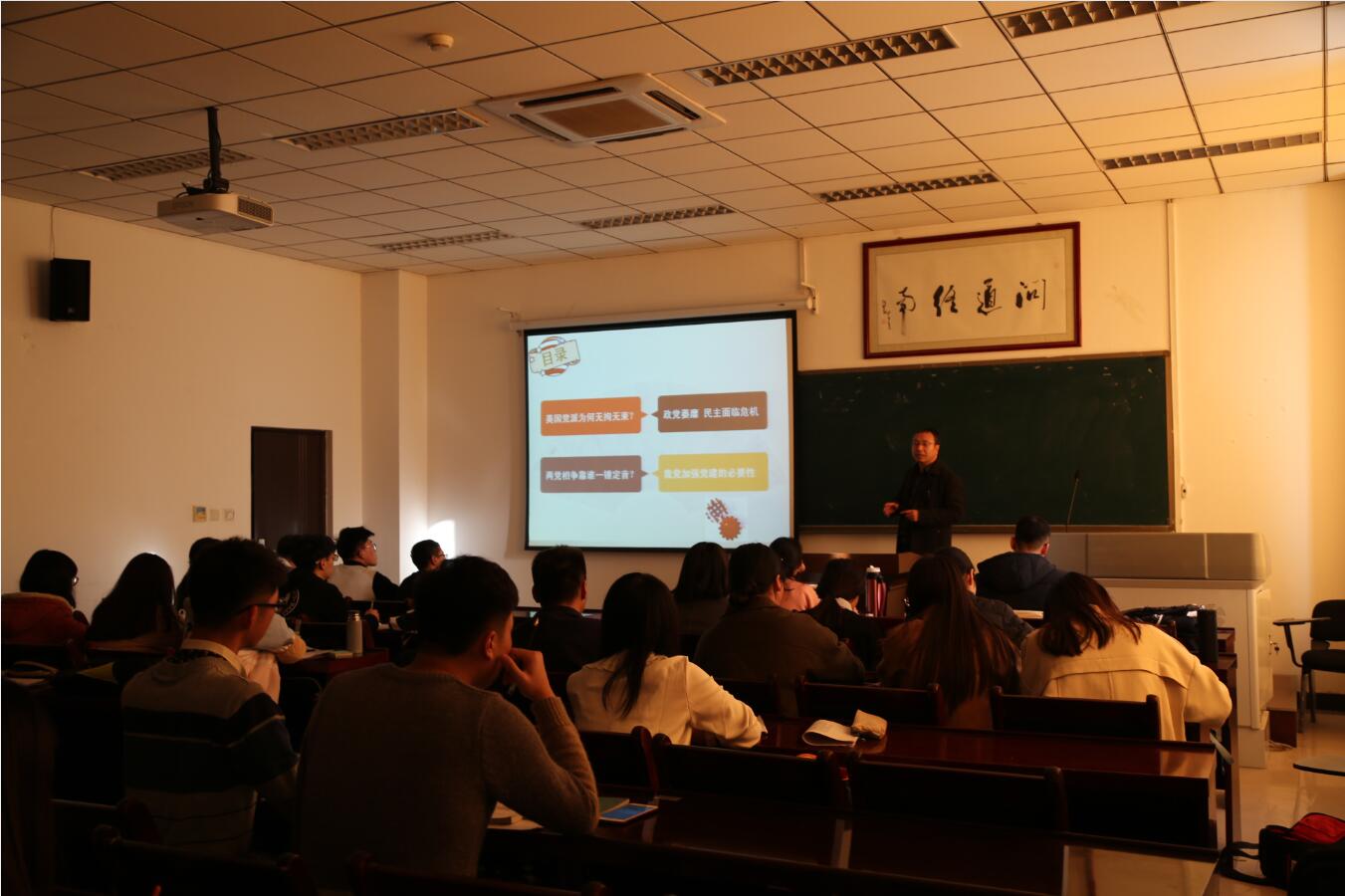 (通讯员 张澜)12月5日下午,beat365亚洲版官网2016年秋季学期业余党校中级班在信远二区106报告厅举行第四次课程培训,beat365亚洲版官网常新教授以“从美国近期选举看我党加强党建的必要性”为题做了报告。