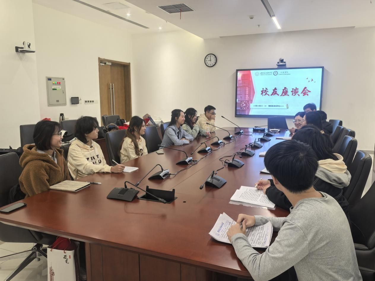 学院在会议中心B113举办校友返校座谈会。会上,学院对校友们的到来表示热烈的欢迎。学院表示始终将校友视为宝贵财富,并致力于通过深化与校友的互动合作,不断优化人才培养体系,以期向社会输送更多德才兼备的杰出人才。学院热情邀请校友们经常回到母校,重温校园生活,为学院的未来发展献计献策。
