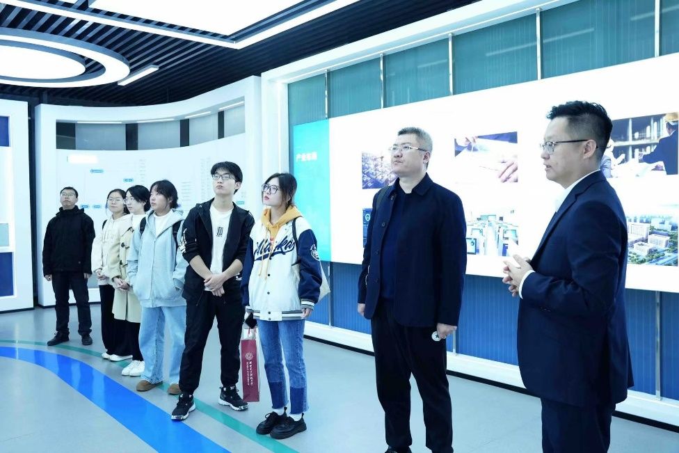 中明建投集团常务副总经理董斌和党支部副书记贾嘉炜首先对学院师生到来表示了热烈欢迎,并带领师生参观了企业宣传展厅及主要运营部门。在参观途中,董斌详细介绍了企业的发展历程、业务领域、代表项目等关键模块和中明建投集团在建筑、公益、传媒等领域的突出成就。他表示,中明建投集团作为一家全国知名企业,不仅是国内少数拥有建筑工程施工总承包特级、双甲级工程设计等全产业链全过程管理的大型建筑企业,也是一家面向城市投资建设多元化发展的企业,全面深化了学院师生对民营企业运营模式的了解和对当下就业形势的认知。