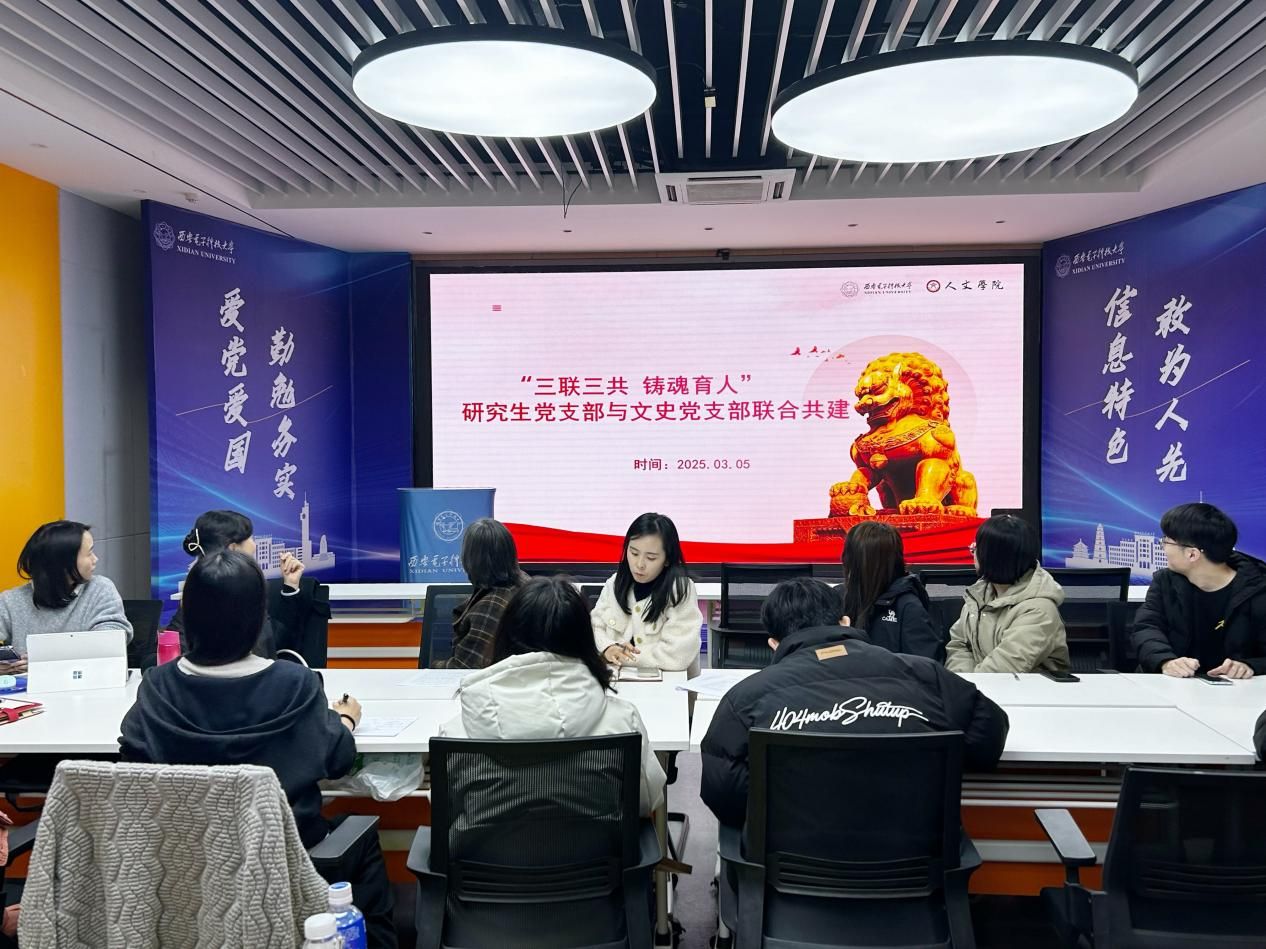 (通讯员罗盈盈)为深化党建引领与学科融合,进一步增强党支部战斗堡垒作用,3月5日下午,beat365亚洲版官网研究生党支部与文史联合党支部开展了“三联三共 铸魂育人”共建工作推进会。学院党委副书记、支部党员、入党积极分子及部分学生代表参加本次活动。