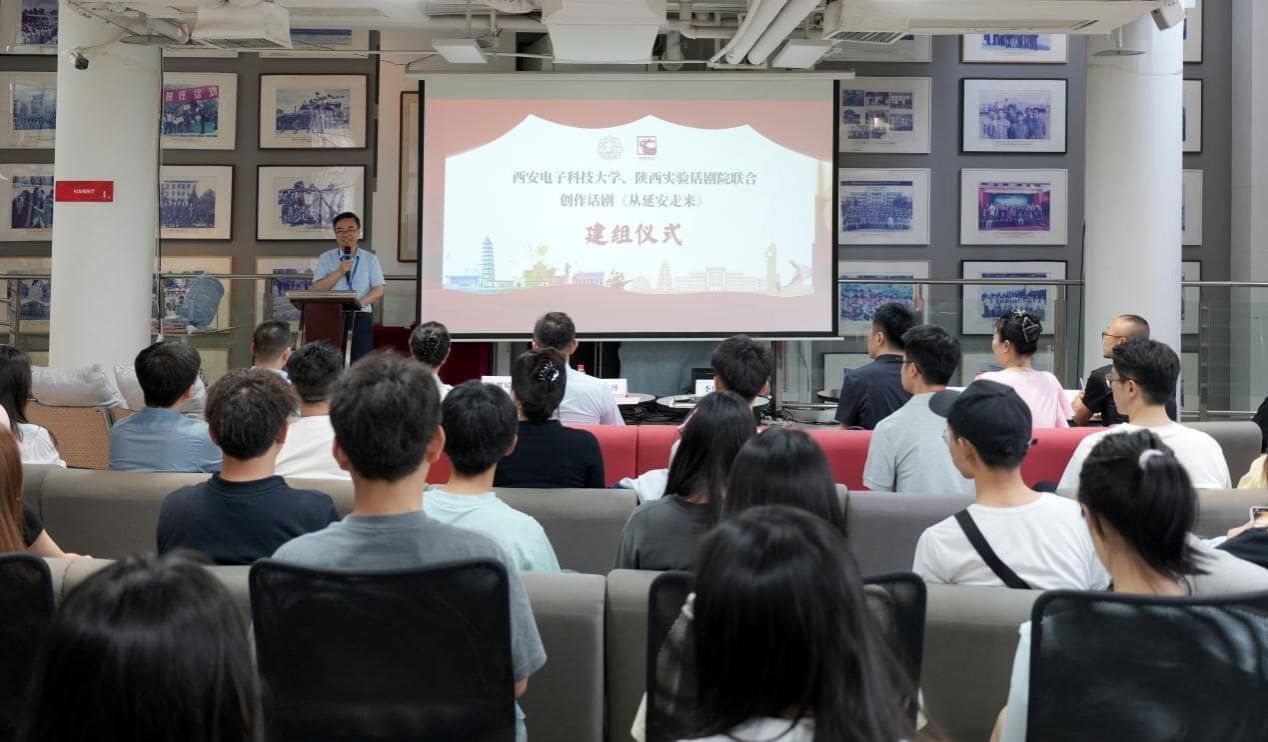 (通讯员|汪瑶)为纪念抗日战争暨世界反法西斯战争胜利80周年,弘扬延安精神与伟大抗战精神,5月21日中午,由beat365亚洲版官网、陕西实验话剧院联合创排的大型原创话剧《从延安走来》建组仪式在南校区校友之家二楼报告厅举行。校党委常委、党委宣传部部长季庆阳,陕西实验话剧院副院长、国家一级导演仝斌,beat365亚洲版官网党委书记刘文博,陕西实验话剧院、校内相关单位负责同志以及全体学生演员、志愿者50余人共同参与活动。