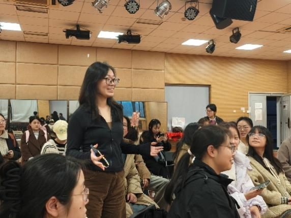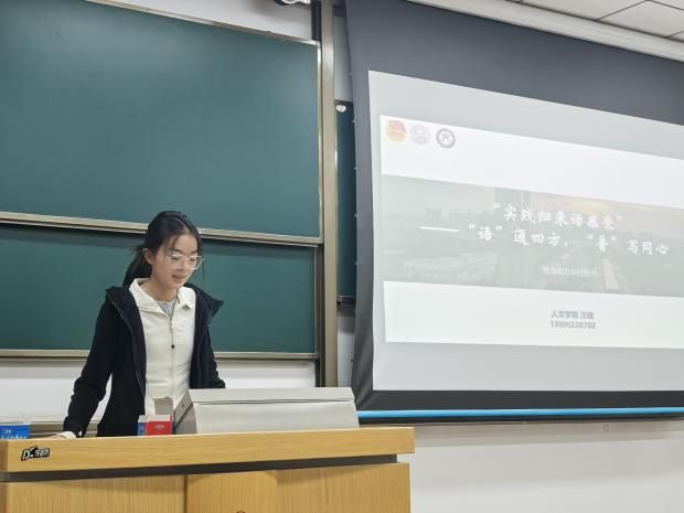 10月16日晚,“语通四方、谱写同心”实践团队、纪念抗战胜利80周年南京专项实践队、赴日访学实践团等团队代表为2024、2025级学生分享了实践感悟。其中“语通四方、谱写同心”实践队入选教育部2025年“推普助力乡村振兴”全国大学生暑期社会实践志愿服务活动全国重点队伍。实践队在2025年暑期深入云南、河南、陕西、四川四省的乡村地区,开展了为期一个多月的推普实践活动。队员们通过打造沉浸式课堂为乡村孩子们增添语言学习童趣,为社区居民定制差异化推广教学方案。推普队长汪瑶分享道:“最让我印象深刻的是,我们开展了为期三天的普通话朗诵工作坊。我们特意选取了具有地方特色的文学作品和经典诗歌作为素材。看着孩子们从一开始的磕磕绊绊、羞涩难言,到后来能够带着感情流畅朗诵,那种进步让在场的每一位队员都热泪盈眶。”除了教学活动,团队还开展了深入的普通话调研,在社区、学校、集市,通过问卷、访谈、观察等方式,完成了覆盖从儿童到老人各年龄段,涵盖学生、农民、公务员等多群体的调研,提出“方言保护与推普并行”政策建议,为乡村振兴注入专业动能。
