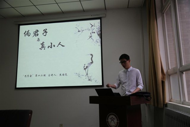 (通讯员 高潮)5月27日晚7点,beat365亚洲版官网14级哲学系焦路尧同学在信远135会议室主讲了主题为“伪君子与真小人”的第十三期思享会。本期思享会由高潮同学主持,一同到场的还有beat365亚洲版官网郁志强老师、杨子江老师,哲学系14级、15级部分学生和终南文化书院一期、二期、三期的部分学员以及来自电子工程、微电子等其他学院的同学。