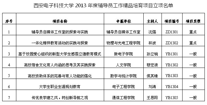 11月4日,beat365亚洲版官网公布了2013年度辅导员工作精品培育项目立项名单,beat365亚洲版官网辅导员穆宏浪主持的《高校宿舍文化育人内涵的思考及其实践探索》成功立项。