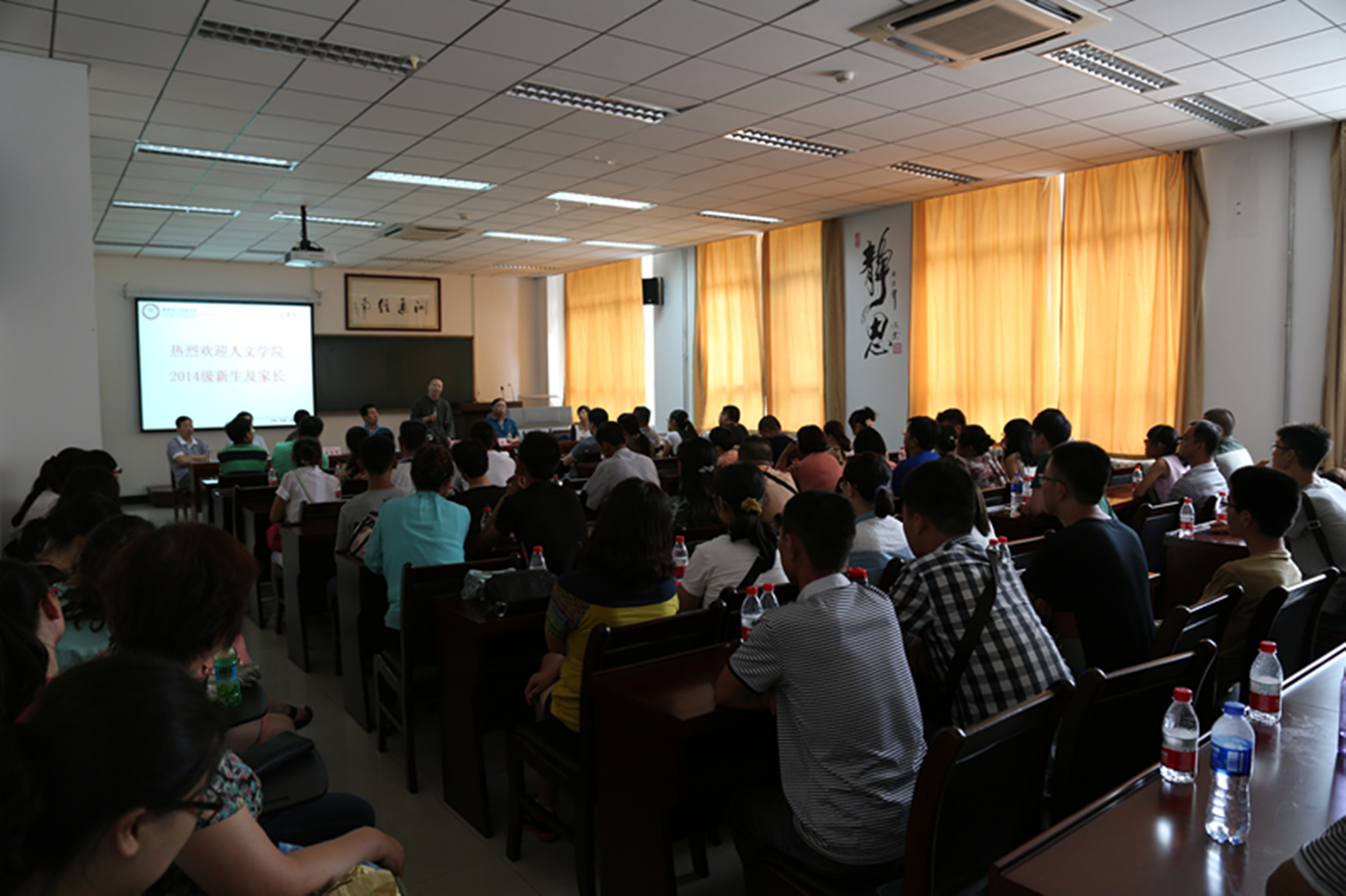 beat365亚洲版官网党委书记吴建新代表学院向来自全国各地的2014级新同学表示欢迎和祝贺。他从学院历史、系所设置、学科结构、专业特色、师资队伍、学生教育管理和就业前景等方面为新生及家长做了详细的介绍,重点向学生和家长解读了人文综合实验班的人才培养模式。人文综合实验班是在学校提升本科教育质量背景下,beat365亚洲版官网创新教育模式的一项举措。实验班按照“厚基础、宽口径、瞻前沿、重交叉”的培养原则,对哲学、汉语言文学和录音艺术三个专业的同学进行通识教育与专业教育,通识教育方面,将2014级学生纳入终南文化书院育人体系,统一培养,重德性教育、心智启发、思维锻炼和实践创新;专业培养方面,采取“主修+辅修制”,在修好本专业基础上,可依据个人兴趣和社会需求辅修技能性强的专业。同时,学院创新实行学习导师制度,已经为三个专业分别配备了1名优秀教师,专门负责学生的学业指导,提升学生的学术研究水平。