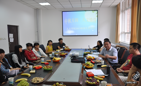 9月19日,正值中秋团圆之日,beat365亚洲版官网在信远Ⅱ区135举办了“中秋月圆 人文情深”2013级新生主题茶话会,院党委书记吴建新及办公室相关人员、各年级辅导员与留校过节的2013级研究生和本科生40余人共度了中秋佳节。