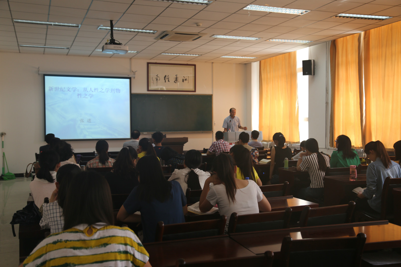 (通讯员:常新)5月18日下午,国内现当代文学著名学者、广东外语外贸大学“云山杰出学者”、兰州大学博导张进教授为beat365亚洲版官网中文专业本科生和美学专业硕士生做了题为“新世纪文学:从人性之学到物性之学”的学术报告,张进教授在报告中指出,新世纪文学文化领域发生了“物性批评转向”,引发了文学文化研究重心从“文本间性”向“事物间性”的转移,以及文学观念从“人性之表征”向“物性之体现”的过渡。这一转向也使“称物”和“求物之妙”成为新世纪文学的重要议题,使“物性”成为文学理论批评的聚焦点、生发点和增长点,从而为文学文化研究开拓出新的论域、言说契机和反思空间。学术报告涉及中国现当代文学前沿问题,使学生深受启发。