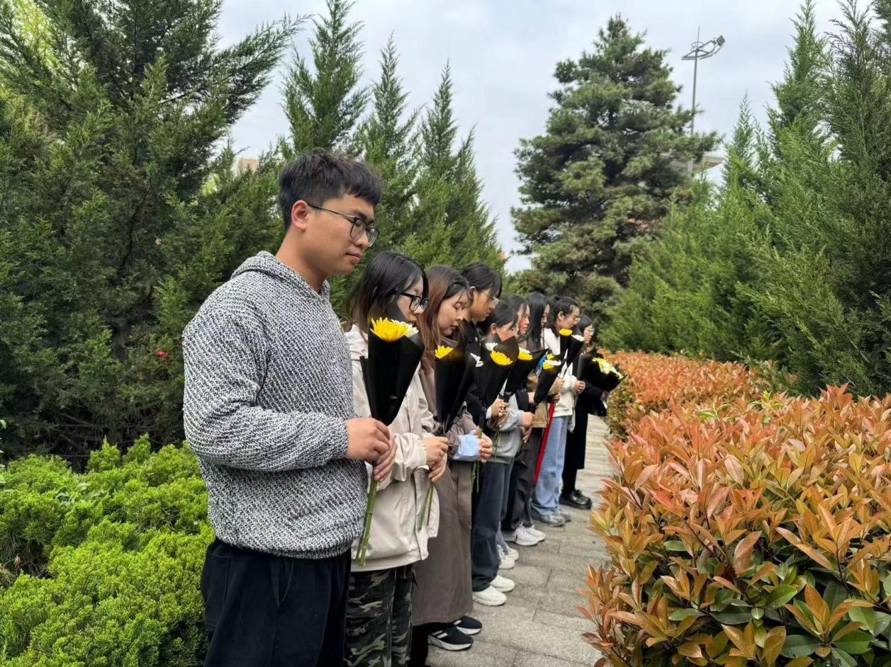 青山绿水留浩气,苍松翠柏慰英灵。随后,学院师生瞻仰了烈士英雄纪念碑,并组织了集体默哀仪式。怀着崇敬与缅怀的心情,师生追思默哀,行鞠躬礼。在自行参观的过程中,大家为烈士墓碑擦拭浮尘,敬献鲜花,在祭扫的实际行动中致敬先烈,感悟英雄精神,传承红色基因。