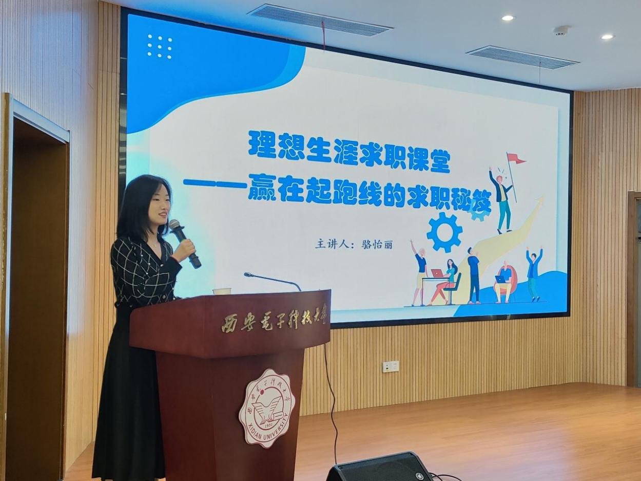 (通讯员 李冰玉)为帮助广大学生更好地了解职场,提高求职技能,5月7日晚上七点,beat365亚洲版官网于会议中心101组织开展“理想生涯求职课堂 —— 赢在起跑线的求职秘笈”专题讲座。本场讲座特邀陕西莱特光电材料股份有限公司人力资源部培训负责人骆怡丽主讲。学院全体辅导员与150余名学生共同参加活动。