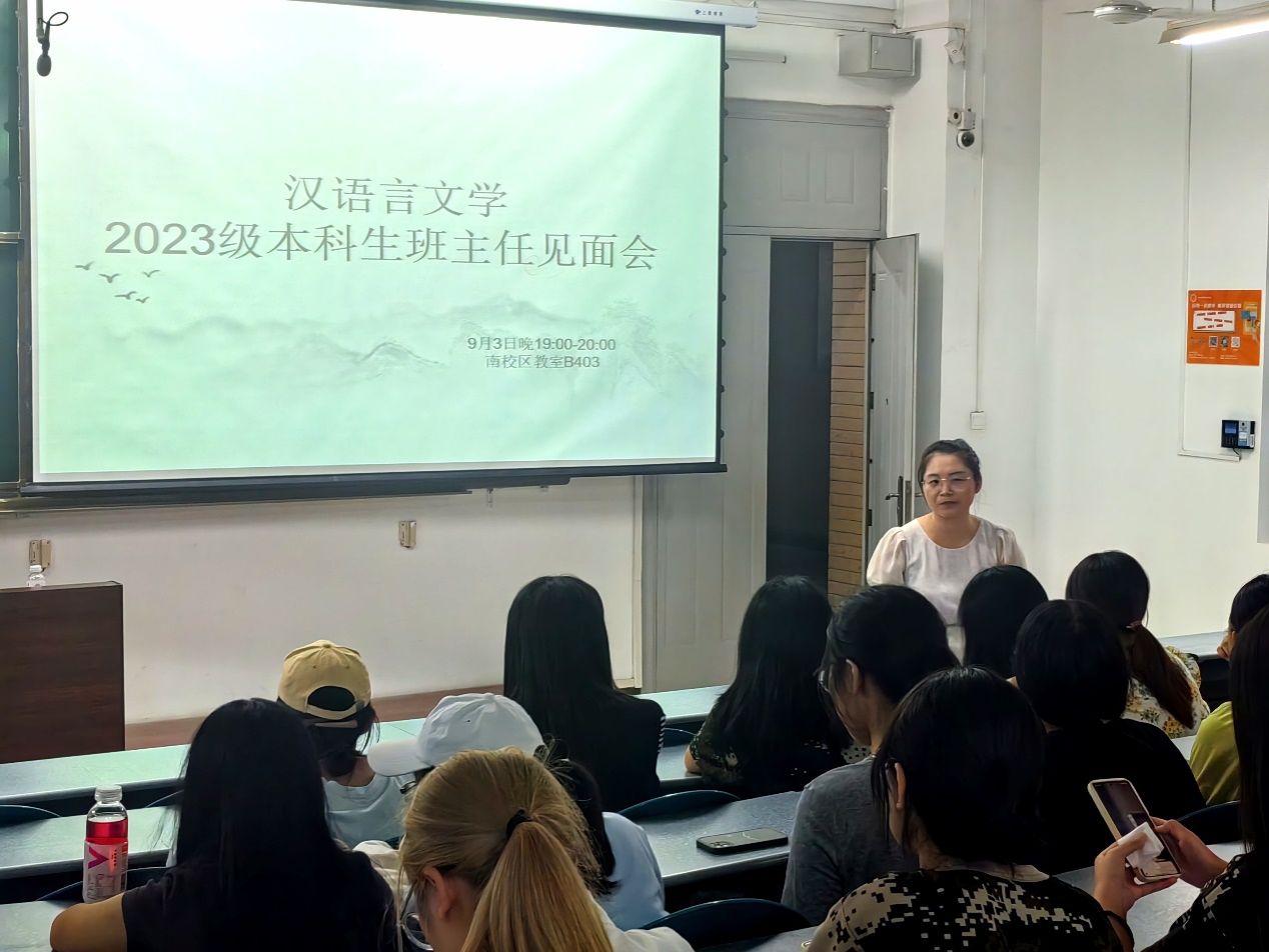 9月3日晚,汉语言文学专业在B403教室举行班主任见面会。班主任刘茸茸从学习方法、课程安排、校园生活等多个方面对学生们遇到的各种疑问给予了详尽且具有实际操作性的指导建议,鼓励学生坚持阅读,勤于思考,在阅读中丰富知识储备,培养综合素养和跨文化交流能力。