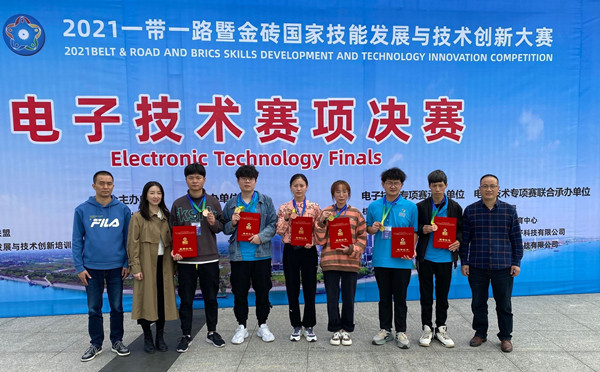 新闻网讯2021一带一路暨金砖国家技能大赛电子技术赛项国内赛决赛于10月11日—13日在湖北枝江职教中心举行,来自全国各类职业院校43支队伍参加比赛。伟德官网伟德国际victor1946组织参赛队参加该赛项,经过连续5个小时的激烈角逐,应用电子技术专业裴贤、周紫欣、卢存勇荣获高职组团体一等奖,付欢、李宁峰、刘勇军荣获高职组团体三等奖。