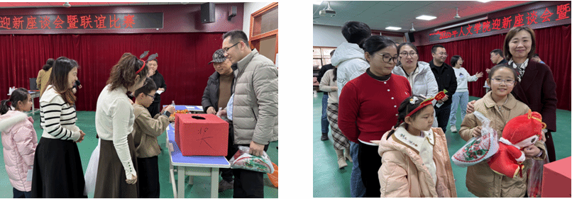 座谈会后,老师和家属们参加了套圈、投壶、盲人敲锣等比赛活动,欢声笑语充满场地,气氛温馨热烈。活动最后抽奖环节,有五位幸运者抽到了学院精心准备的小礼物。