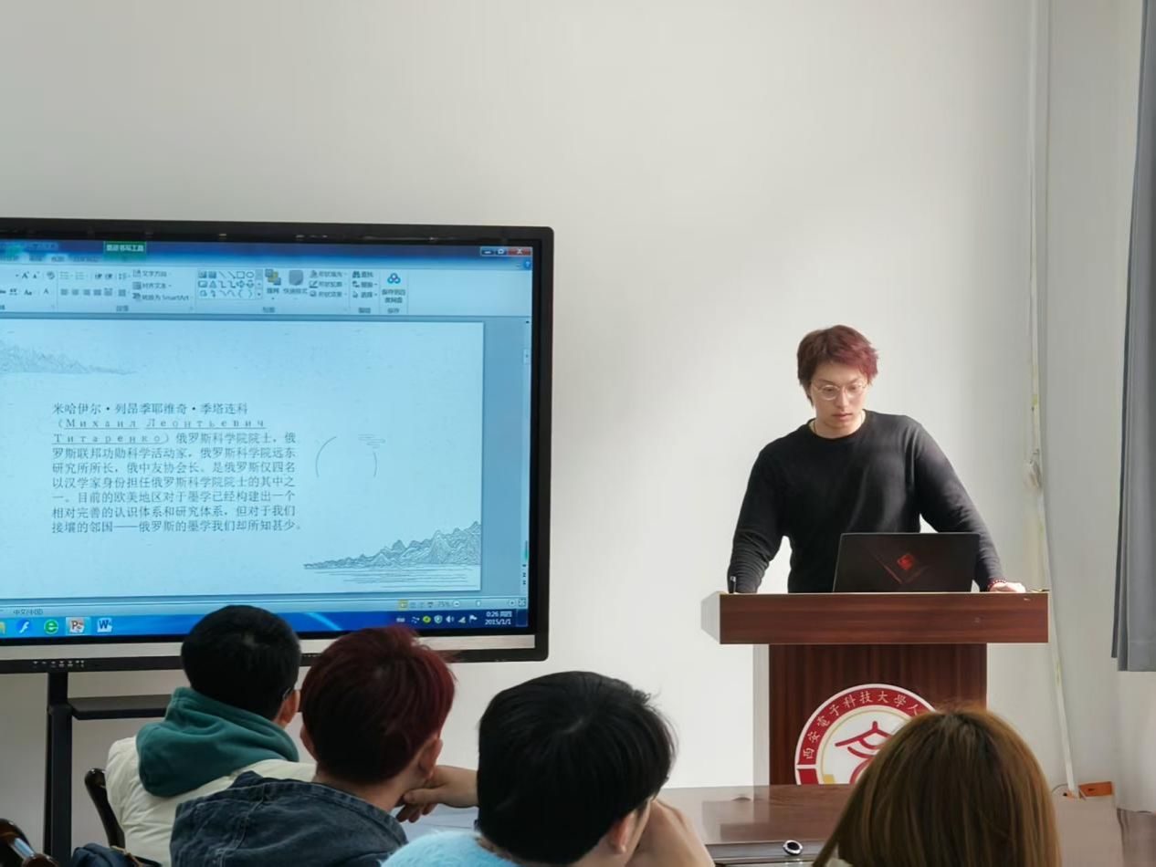 李昊天以《论季塔连科的墨学研究——以墨家学派的传承与中绝为例》为题进行汇报,系统梳理了俄罗斯汉学界的墨家兴衰史,揭示了墨家学派命运背后的文明演进规律,还原了墨家发展的历史轨迹。他认为,了解其墨学研究有助于我们清晰地把握中国传统文化在国际文化交流中的传播规律与发展趋势,从而打破文化隔阂,为构建人类命运共同体背景下的多元文化共生模式提供丰富的理论与实践依据。苏丽老师在评议中从墨家发展轨迹与其内在思想的联系出发,进一步分析了论文的整体结构,讨论了该章节内容与后续研究之间的关联性,梳理了章节之间的逻辑链条,引导研究者建立以问题为导向的学术写作范式。