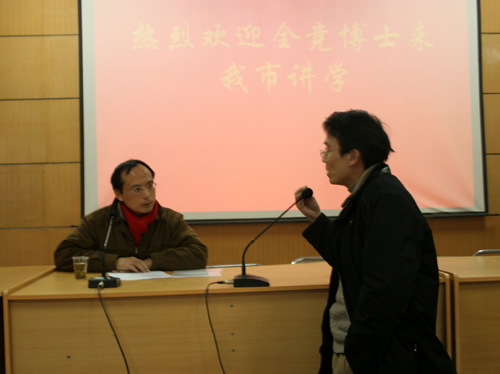 “今天是2008年的第一个工作日,回到家乡感到格外亲切”,全竞博士一脸激动的倒出了思乡之情。全竞博士首先向大家介绍了自己的成长经历。他毕业于十堰市一中,人生的第一个转变是1979年考上武汉大学计算机科学专业,1986年获武汉大学工商管理硕士学位。人生的第二个转变是当时中美经济管理的学习交流,国家教育部在全国抽取50名专家赴美学习,全博士自信微笑的说:“我幸运的成为其中之一”。1990年获得美国弗罗里达大学哲学博士学位,1998年取得微软系统工程师、训练师证书,曾经在世界银行工作。全博士与北京大学深圳学院、东北财经大学曾开展过合作,在信息技术和商业运作方面有着丰富的理论知识和实践经验。
