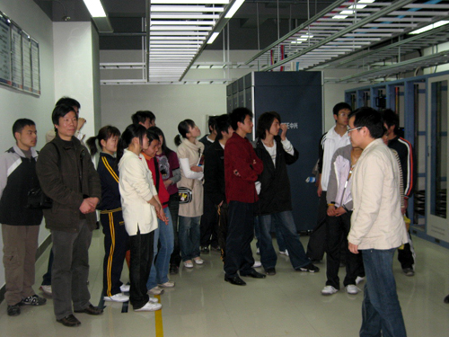 3月6日、7日、10日、11日,在该系主任夏德洲的带领下,计算机工程系分批组织了计算机应用、网络维护、图形图像、信息管理4个专业的大一学生到十堰市财政局信息中心、中国电信十堰分公司网络数据中心进行了观摩学习。同学们除观看十堰市最先进的网络设备设施、作用、运行情况外,还聆听了那里的技术人员现场演示和讲解。每到一处,随学生同行的,还有相应教研室的全体老师。