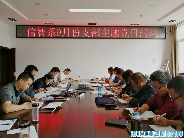 新闻网讯(通讯员 左鑫)9月5日下午,信智系教工党支部以“做合格党员,当创文先锋”为主题,在4412党员活动室开展九月份主题党日活动,活动由教工支部书记张明主持,全系教工党员参加。