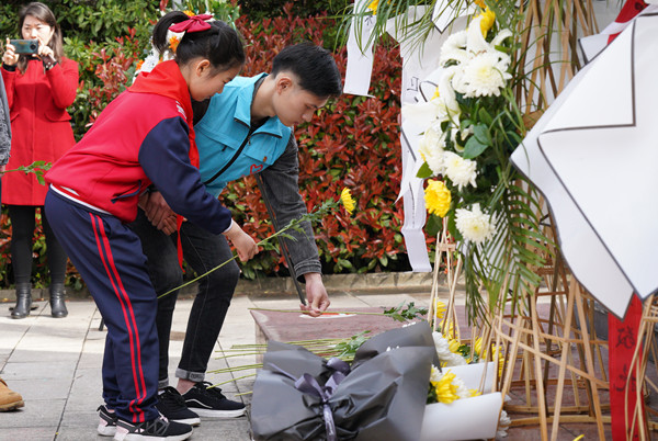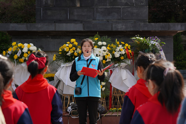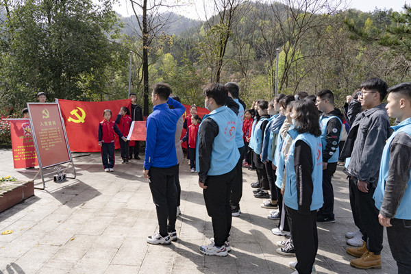游圣地,瞻仰革命烈士纪念碑。在茅箭区东沟烈士英雄纪念碑前,学生党支部10名入党积极分子带领小学生们向烈士纪念碑鞠躬敬礼、默哀献花,共同缅怀革命先烈。活动现场,入党积极分子代表刘云向大家讲述了东沟的创建历史和革命时期先辈的英勇事迹。党员同志们举起右手、庄严宣誓,以重温入党誓词的方式表达共产党员不忘初心、牢记使命的崇高信仰。