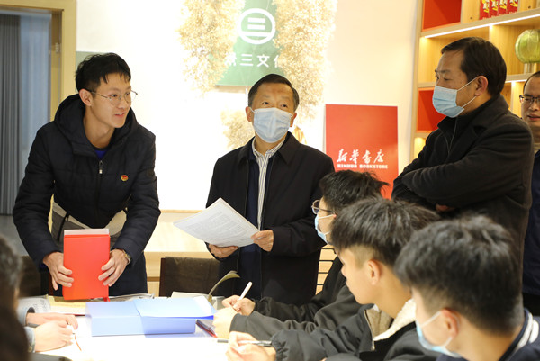 蔡静峰一行实地走访察看了伟德官网倍阅书店、北区食堂、心理健康教育与咨询中心、艺术设计学院(绿松石产业学院)、大学生创新创业基地等场所,深入了解伟德官网思政文化育人阵地建设、心理育人工作、党史学习教育和“我为师生办实事”项目以及学校服务地方经济社会发展等情况。