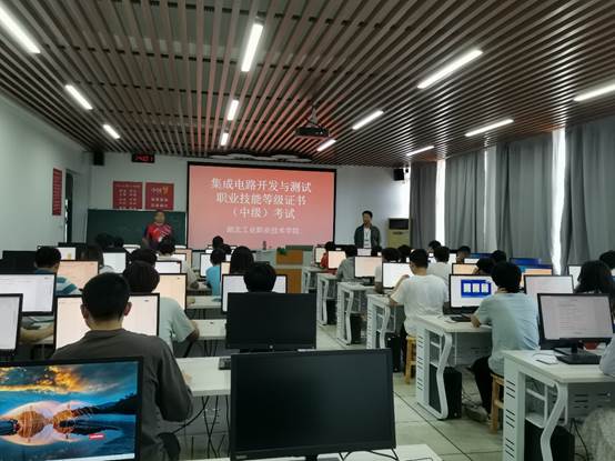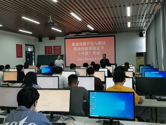 伟德国际victor1946对1+X试点工作高度重视,专门成立1+X认证推进小组,选派多人次参与杭州朗迅科技股份有限公司(以下简称杭州朗迅)举办的师资培训及考务培训,坚持每月2次书面汇报1+X证书推进情况。今年4月初顺利完成了2023年度集成电路开发与测试职业技能等级证书考核站点申报及湖北职业教育培训申报工作,随后完成了学生报名信息录入、考试计划协商、考试方案制定等诸多前期准备。