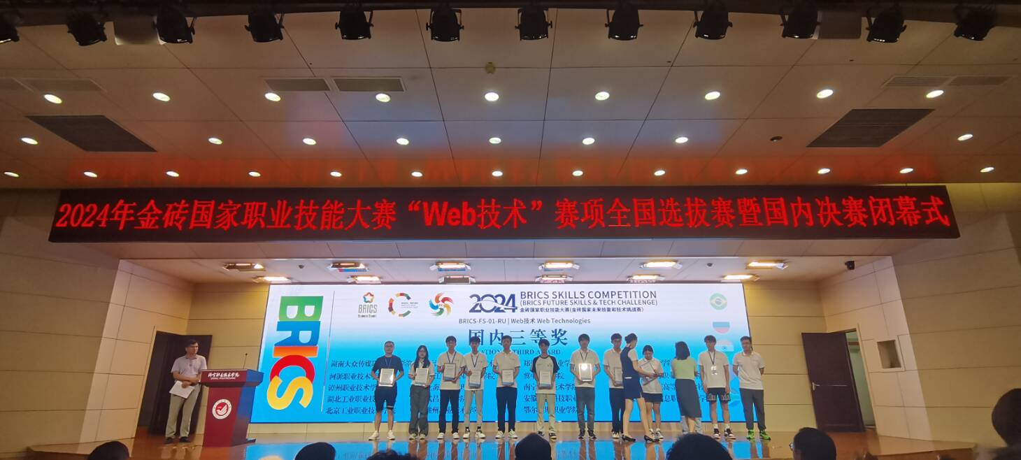 新闻网讯(通讯员 田圻) 7月22日—23日,2024金砖国家职业技能大赛Web技术赛项全国选拔赛暨国内决赛在山东举办。伟德官网伟德国际victor1946学生陈亭妤、金宏阳在田圻老师的精心指导下刻苦训练、沉着应战,在区域选拔赛中分别荣获一等奖、三等奖。陈亭妤同学成功晋级国内决赛,最终在来自全国28个省、市、自治区的49支参赛队伍的竞技角逐中脱颖而出,荣获三等奖。