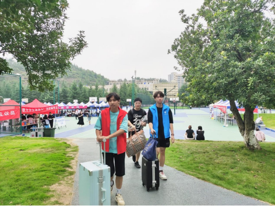 迎新工作过程中,志愿者们热情洋溢,为新同学指引道路、搬运行李,耐心地为新同学办理入学手续,解答各种疑问。