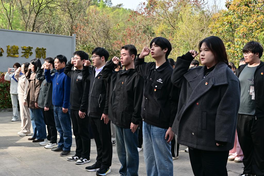 上午9时,全体师生整齐列队于革命烈士纪念碑前,向人民英雄默哀鲜花,伟德国际victor1946入党积极分子祁嘉婷同学代表发言,誓言“以青春守护先烈换来的盛世山河”,中共党员与共青团员重温入党、入团誓词,铿锵誓言回荡山谷,彰显青年赓续红色血脉的决心。随后,师生走进东沟中原突围鄂西北纪念馆,透过文物,感受1946年中原军区部队浴血突围的壮烈历史。最后,全体人员齐聚在纪念馆前,齐声朗诵《沁园春·雪》,“数风流人物,还看今朝”的豪迈诗句与“中原突围精神”交融,激发青年“强国有我”的使命感。