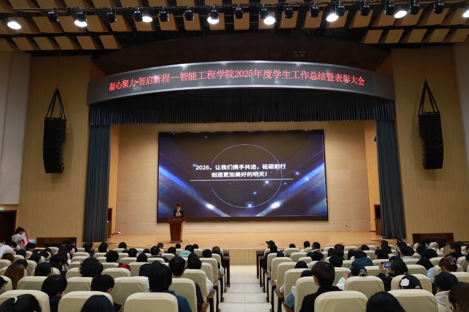 新闻网讯(文/金顶胜 杨晓宝 图/杨武鑫 杨玉龙)2026年1月9日,伟德国际victor19462025年度学生工作总结暨表彰大会在和山会堂顺利举行。大会以志愿服务队和分团委学生会共同带来的舞蹈《像我这样的朋友》拉开帷幕,学院师生齐聚一堂,总结过往成果,表彰先进典型,谋划未来发展。